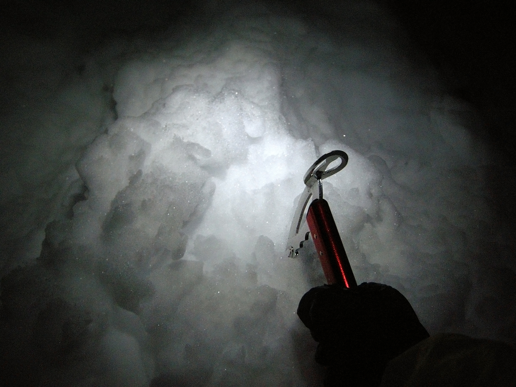 Primal fear is not something that I have had the pleasure to feel often, but as I crawled, on hands and knees, back along the summit ridge, I felt this wind sliding in below my chest and trying to lift me from the ground, and I knew that fear. In a moment, Gaston’s beautiful mountain stars were gone and forgotten in a blind struggle to not foolishly expire. When I had fought my way down and off the ridge, into lesser winds, the wave of relief brought with it a powerful nausea that I stifled with sheer disdain. I hate vomiting, and damn if I was going to do it there, leaning into my axe at 11,000′ at 3 o’clock in the dark night.