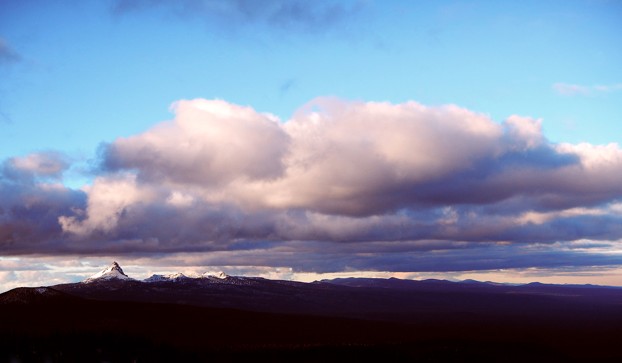 There beneath Mt Scott, in the frigid evening, we were treated to an amazing sunset playing across the face of the mountain and out onto the dry plains a few thousand feet below us.